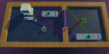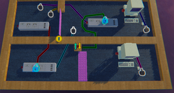 Create loops with plugs and sockets to generate power. Connect plugs to doors and PCs. Solve the puzzles.